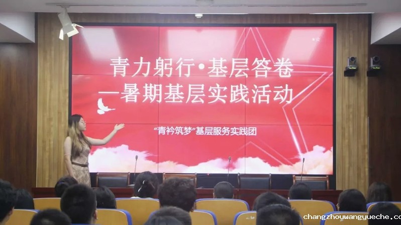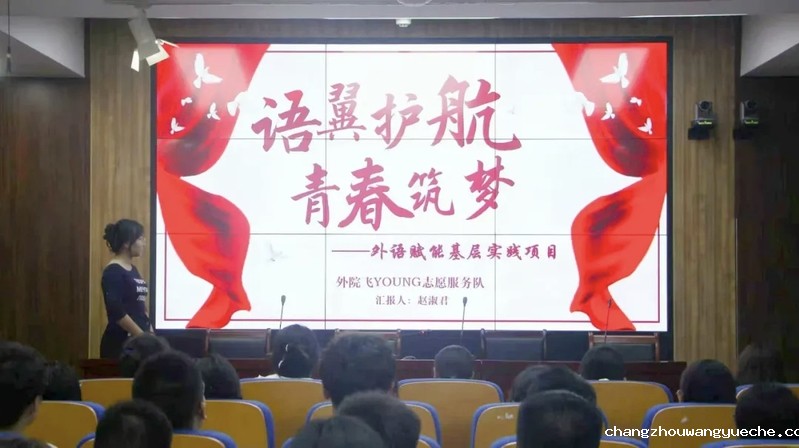 会上,志愿服务队学生代表赵淑君、杨婷婷通过PPT展示的方式,对外院飞“YOUNG”志愿服务队暑期社会实践活动的目标、实践内容、活动成果和社会反响进行汇报。