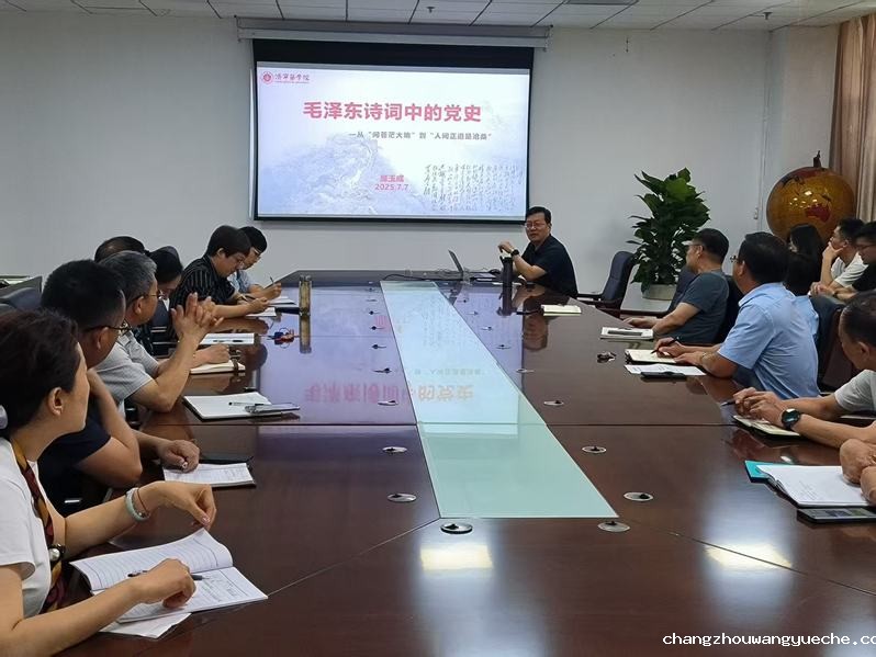 庞玉成同志以《毛泽东诗词中的党史》为题,通过对不同历史时期毛泽东诗词的解读,带领党员们回顾了党的光辉历程。从建党前后毛泽东诗词中展现的青年壮志与求索精神,到土地革命战争时期诗词所反映的星火燎原之势;从长征史诗中体现的战略转移壮歌,到抗日烽烟中吹响的民族解放号角;从解放洪流中走向胜利的宣言,再到社会主义探索时期建设新天的豪情,毛泽东诗词宛如一部生动的党史教材,不仅让党员们领略到了毛泽东诗词的文学魅力,更重要的是,深刻领悟到诗词背后所蕴含的革命乐观主义精神、坚定的理想信念以及为人民谋幸福的初心。